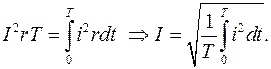 Обозначим через I некоторый постоянный ток, при протекании которого по тому же участку цепи за время T выделится такое же количество тепла. Тогда: