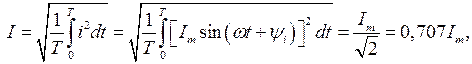 Так как действующее значение переменного тока – это величина постоянного тока эквивалентного переменному току по количеству выделяемого тепла, то действующее значение переменного тока можно охарактеризовать интегралом Джоуля (тепловым импульсом).