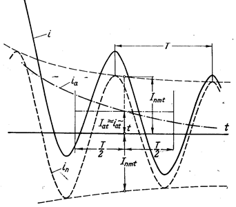 действующее значение апериодической составляющей за один период равно мгновенному значению в момент, находящийся посредине данного периода
