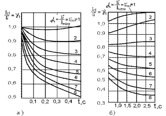 Независимо от типа генератора кривая изменения периодической составляющей тока во времени зависит только от удаленности короткого замыкания и тесно связана с начальным значением тока короткого замыкания. Данный метод требует аналитического расчета начального тока КЗ. Кривые метода выглядят следующим образом (рис. 7.16):
