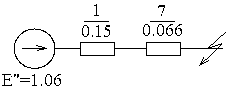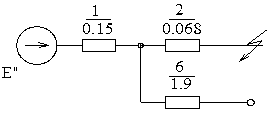 Значение сверхпереходной ЭДС и остальные параметры схемы найдены в примерах 7.1 и 7.2.