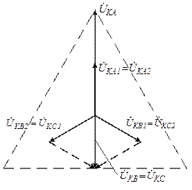 Что касается напряжения нулевой последовательности, то оно может иметь произвольное значение, так как при рассмотрении данного вида КЗ смещение нейтрали системы относительно земли не влияет на величины токов. Поскольку в данном случае для токов путь через землю отсутствует (