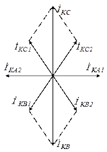 б) векторная диаграмма токов в месте КЗ
