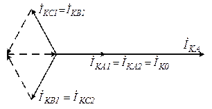 и симметричные составляющие токов в месте КЗ связаны простыми соотношениями: