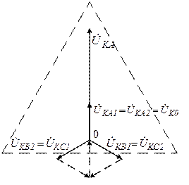 , что соответствует двухфазному короткому замыканию без соединения с землей. Напряжение неповрежденной фазы относительно земли в месте КЗ составляет