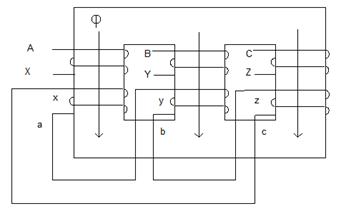 Трансформаторы с одиннадцатой группой соединения (как и все нечётные) отличаются от трансформаторов с чётной группой тем, что обмотки соединяются не одинаково (Y/∆).
