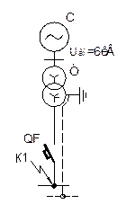 1. Электрические установки напряжением до 1 кВ, питаемые от распределительной сети ЭС через понижающие трансформаторы, характеризуются большой электрической удаленностью от источников питания. Это часто позволяет считать, что при КЗ за понижающим трансформатором напряжение в точке сети, где он присоединен, остается практически постоянным и равным своему номинальному значению. Так для типовой схемы с силовым трансформатором ГПП мощностью 25 МВ·А и цеховым трансформатором мощностью 1 МВ·А,сопротивление трансформатора на ГПП приблизительно в 25 раз меньше чем в ЦТ (при одних напряжениях).
