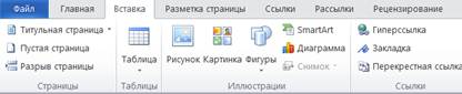 Лента в Word 2010 содержит команды и другие пункты меню, которые раньше располагались в меню и на панелях инструментов в Word 2003. Расположение часто используемых команд на ленте показано ниже (см. рис. 18 - 24).