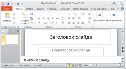 Лента в PowerPoint 2010 содержит команды и другие пункты меню, которые раньше располагались в меню и на панелях инструментов в PowerPoint 2003. Каждая вкладка содержит инструменты для выполнения операций определенного типа, например средства для вставки или применения анимации к объектам. Команды объединены в логические группы и собраны вместе на вкладках. Коллекция — это прямоугольное окно или меню с набором соответствующих изображений. Чтобы не перегружать ленту, некоторые вкладки отображаются только по мере надобности (например, вкладка Работа с рисунками появляется после выделения вставленного в рисунок слайда).