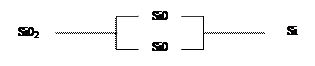 В левой приходной части мы видим кремнезем и углерод, представляющий шихту плавки, в правой расходной части продукты восстановления: жидкий кремний и газообразный монооксид углерода - СО, технологический газ. Фактически химизм технологии более сложный. Вместо одной главной реакции в горне печи последовательно протекает цепочка восстановительных реакций, валентность кремния в которых уменьшается до нуля в соответствии с принципом Байкова. Простейшая схема последовательных превращений выглядит следующим образом: