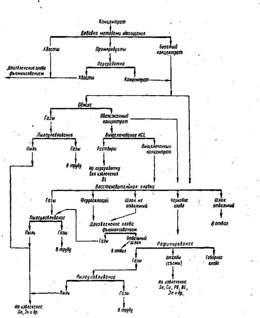 Рис. 68. Краткая технологическая схема переработки оловянных концентратов