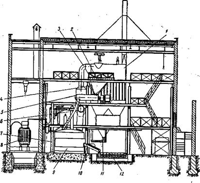 Рис. 100. Установка электропечи в цехе:
