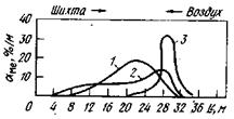 Для нормальной работы вельц-печи необходимо в шихте создавать восстановительную газовую среду, а в газовом потоке над шихтой - окислительную. Кислород в дутье расходуется на газификацию восстановителя, на сжигание коксика как топлива и на окисление возгонов. При полном использовании газообразного кислорода, попадающего в шихту, в газовом потоке не должно быть СО, а содержание СО2 и О2 в потоке связано с объемной и линейной скоростями подаваемого в печь воздуха, а также с температурой газового потока и шихты в печи.