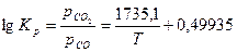 Ниже приведены значения константы равновесия, рассчитанные для различных температур: