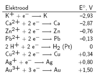 Металлические электроды, поставленные по мере возрастания значений стандартных потенциалов, образуют
