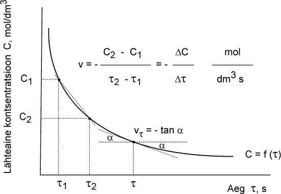 Скорость химической реакции есть число элементарных актов химической реакции, происходящих в единицу времени в единице объема (для гомогенных реакций) или на единице поверхности (для гетерогенных реакций).