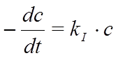 В случае реакции первого порядка m + n = 1 и скорость реакции пропорциональна концентрации исходного вещества: