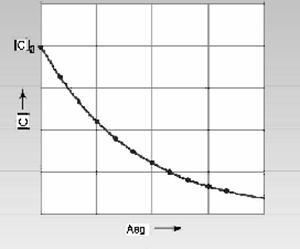 Концентрация исходного вещества в реакции 1-го порядка спадает экспоненциально: