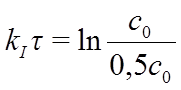 Подставляя величину уменьшенной наполовину начальной концентрации ct = 0,5×c0, можем рассчитать время полупревращения: