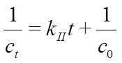 Зависимость обратной концентрации от времени для реакций второго порядка