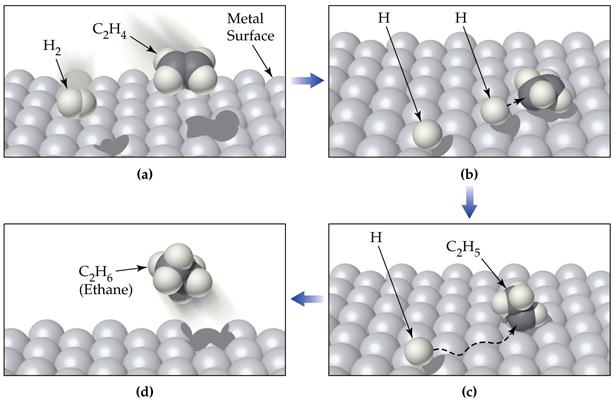 В гетерогенных реакциях роль промежуточных продуктов обычно играют молекулы, связанные химическими силами с поверхностью раздела фаз (химически адсорбированные на поверхности).