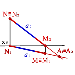 | Рисунок 20. Нахождение горизонтального и фронтального следов прямой линии |