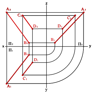 | Рисунок 24. Прямые параллельные профильной плоскости проекций |