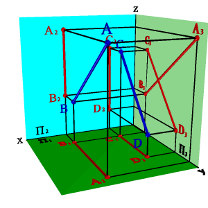 Параллельными называются две прямые, которые лежат в одной плоскости и не имеют общих точек. Проекции параллельных прямых на любую плоскость (не перпендикулярную данным прямым) - параллельны. Если ABCD то A1B1C1D1; A2B2C2D2; A3B3C3D3 (рис.23). В общем случае справедливо и обратное утверждение.