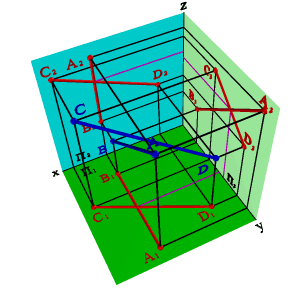 О взаимном расположении прямых, лежащих в этой плоскости, можно судить по одной горизонтальной проекции (А 1 В 1∩ С 1 D 1Þ АВ∩СD).