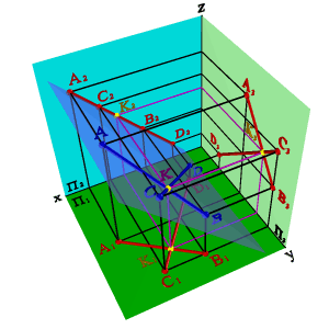 | Рисунок 27. Пересекающиеся прямые расположены в фронтально проецирующей плоскости |