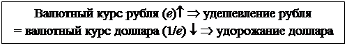 Таким образом, при двухстороннем (между двумя странами) валютном курсе рост валютного курса национальной валюты (рубля) соответствует удешевлению национальной валюты (рубля) и удорожанию иностранной валюты (доллара), а снижение валютного курса национальной валюты (рубля) соответствует удорожанию национальной валюты (рубля) и удешевлению иностранной валюты (доллара).