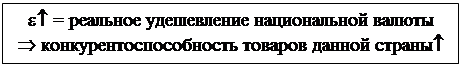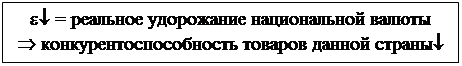 Таким образом, рост реального валютного курса, усиливая спрос иностранцев на товары, произведенные в данной стране, соответствует повышению конкурентоспособности товаров этой страны на мировых рынках. А снижение реального валютного курса приводит к снижению у иностранцев желания покупать произведенные в данной стране товары, что означает падение их конкурентоспособности на мировых рынках.