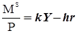 (Y, r) горизонтальна, кривая IS имеет стандартный отрицательный наклон, а кривая LM – положительный.