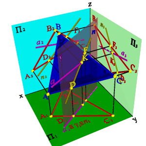 | Рисунок 52. Нахождение точки пересечения прямой и плоскости |