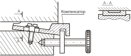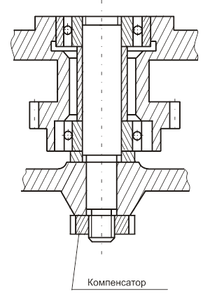 Примером упруго-деформируемого компенсатора может служить разрезной подшипник качения, который имеет три несквозных шлица и один сквозной. За счет упругих свойств подшипника регулируют величину зазора между валом и подшипником качения.