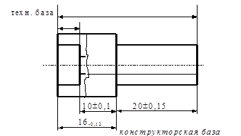 Таким образом, допуск размера, проставленного от новой (технологической) базы будет меньше допуска конструкторского размера на величину допуска на расстояние между технологической и конструкторской базами.
