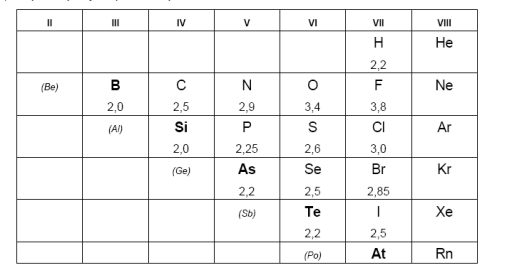 В таблице указаны также относительные электроотрицательности элементов (ОЭО), характеризующие полярность связи и активность неметалла:
