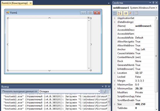 webBrowser1->Navigate(pt); // загрузка начальной страницы