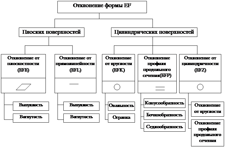 К отклонениям формы относятся все отклонения от номинальной формы кроме шероховатости (рис. 56).