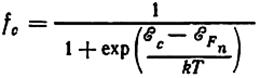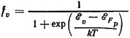 ) определяют вероятность того, что данный уровень свободен от электрона, или, что то же самое, занят дыркой. Значит, вероятность одновременного наличия электрона в зоне проводимости и дырки в валентной зоне равна произведению