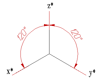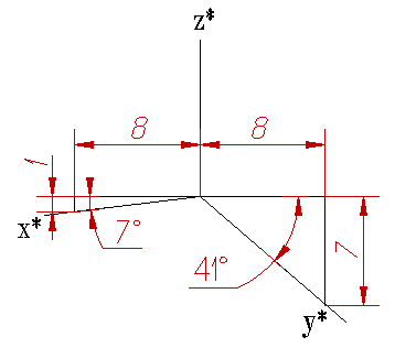 В практических построениях от таких дробных коэффициентов обычно отказываются, вводя масштаб увеличения, определяемый соотношением 1/0,94=1,06, и тогда коэффициенты искажения по осям x' и z' равны единице, а по оси y' вдвое меньше υ=0,5.