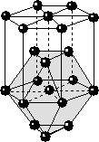 9) Структура Mg. Строится на базе ПГУ. Как и для всех ПУ КЧ атомов равно 12, однако КП имеет другую форму, называемую гексагональным кубоктаэдром. Аналогичную структуру имеют минералы осмирид и иридосмин – сплавы Os и Ir.
