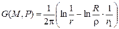 Функция Грина (источника) для круга может быть получена таким же способом, как и функция для сферы. В этом случае функцию следует искать в виде