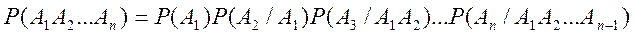 В случае произведения нескольких зависимых событий вероятность равна произведению одного из них на условные вероятности всех остальных при условии, что вероятность каждого последующего вычисляется в предположении, что все остальные события уже совершились.