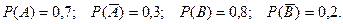 Пример. Два стрелка стреляют по мишени. Вероятность попадания в мишень при одном выстреле для первого стрелка равна 0,7, а для второго – 0,8. Найти вероятность того, что при одном залпе в мишень попадает только один из стрелков.