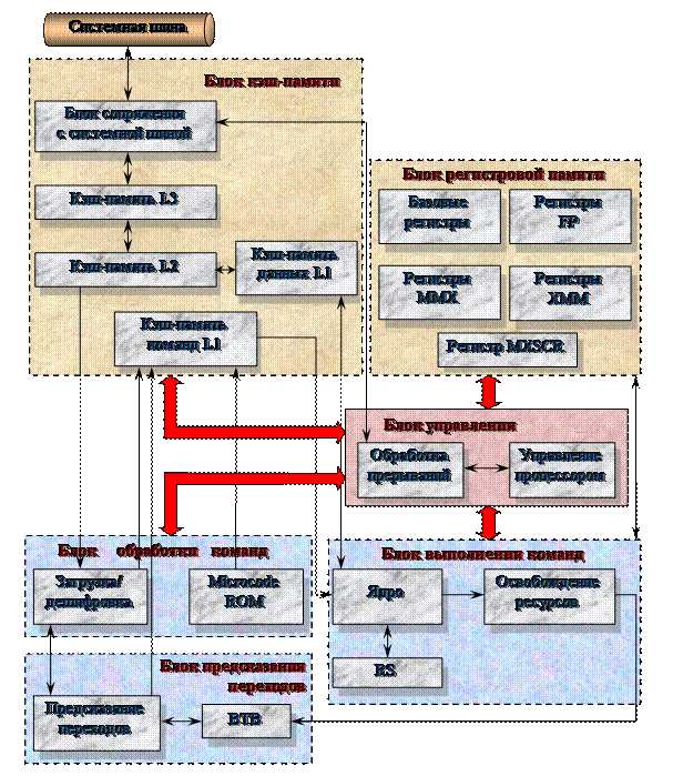 Основные компоненты архитектуры NetBurst и их связь представлены на рис. 1.3.20.