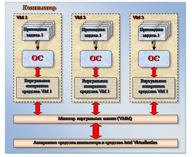 Технология Intel Virtualization для наборов команд IA-32, Intel 64 и IA-64 позволяет представить компьютер как несколько виртуальных машин – VM (Virtual Machines) (рис. 1.3.25).
