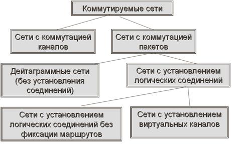 В одной и той же сетевой технологии могут быть задействованы разные способы обмена данными. Так, дейтаграммный протокол IP используется для передачи данных между отдельными сетями, составляющими Интернет. В то же время обеспечением надежной доставки данных между конечными узлами этой сети занимается протокол TCP, устанавливающий логические соединения без фиксации маршрута. И, наконец, Интернет является примером сети, использующей технику виртуальных каналов, так как в состав Интернета входит немало сетей ATM и Frame Relay, поддерживающих виртуальные каналы.