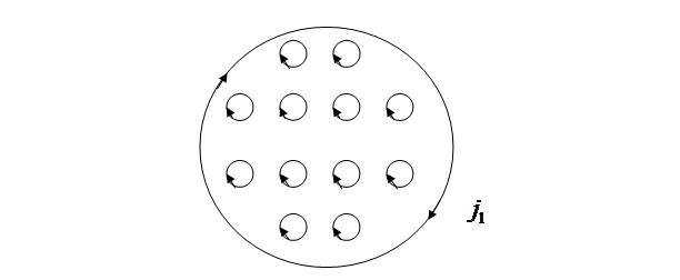 Внутри однородного магнетика соседние участки молекулярных токов взаимно компенсируют друг друга, так что остается нескомпенсированным поверхностный ток на границе магнетика с линейной плотностью