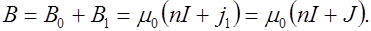 имеет смысл линейной плотности тока обмотки соленоида (силы тока в расчете на единицу длины соленоида).